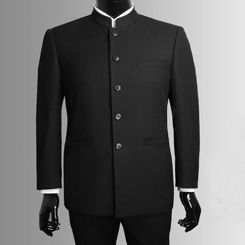 Black Tunic Men Suits with Stand Collar for Gentleman 2 Piece Chinese Style Wedding Groomsmen Tuxedo Male Fashion Jacket Pants