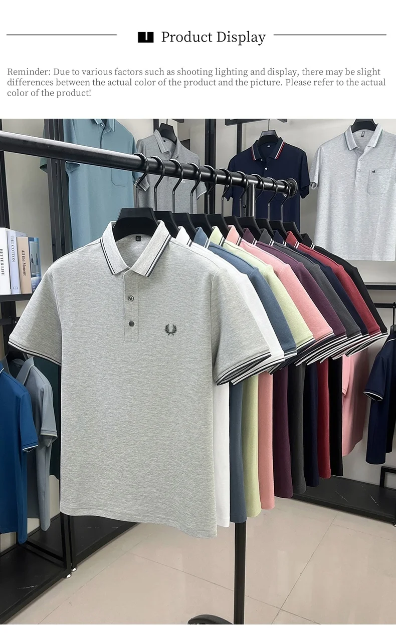 100% pure cotton high-end brand summer designer original exquisite embroidered polo shirt men's comfortable casual short sleeve